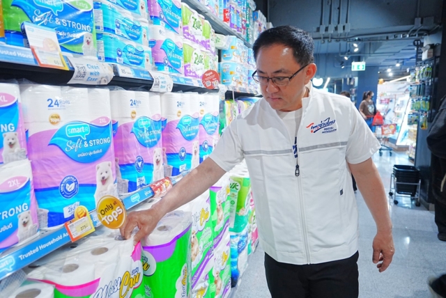 วันนี้ (วันอังคารที่ 7 เมษายน 2569) กระทรวงพาณิชย์ โดย กรมพัฒนาธุรกิจการค้า ลงพื้นที่ภายหลังที่ได้ประสานห้างฯ ให้ช่วยดำเนินการตามข้อสั่งการของ ฯพณฯ ท่านนายกรัฐมนตรีเพื่อตรวจราคาสินค้าและสถานการณ์การจับจ่ายใช้สอยสินค้าไทยช่วยไทย ณ Tops เซ็นทรัลรามอินทรา รวมถึง มุมจำหน่ายสินค้าไทยช่วยไทยเป็นกาลเฉพาะ โดยสิ่งแรกที่เห็นเมื่อมาถึงหน้า Tops คือ ซุ้มจำหน่ายสินค้าไทยช่วยไทยขนาดใหญ่ที่มีสินค้า House Brand อุปโภค-บริโภคที่จำเป็นในชีวิตประจำวันหลากหลายรายการ ในราคาพิเศษที่มีส่วนลดสูงสุดถึง 50% โดยสินค้าไทยช่วยไทยได้รับความนิยมจากพี่น้องประชาชนที่เข้ามาซื้อสินค้า โดย Tops ได้จัดส่วนลดเป็นพิเศษ ขณะเดียวกัน ได้นำสินค้าหลายรายการมาจัดโปรโมชันลดแล้วลดอีก เพื่อช่วยลดภาระ ลดค่าครองชีพ ให้ประชาชนตามนโยบายของรัฐบาล