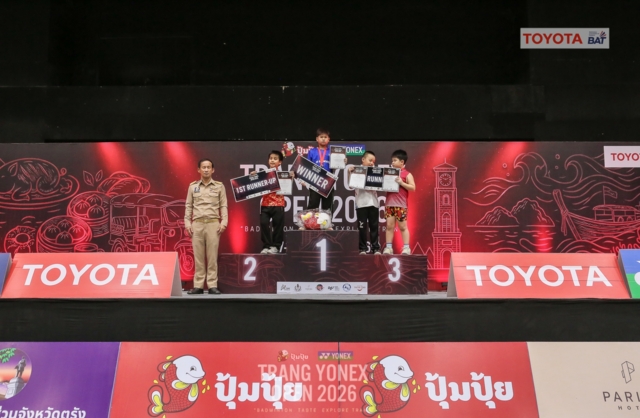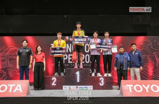 กรุงเทพฯ / ตรัง, 22 เมษายน 2569 - การแข่งขันแบดมินตันระดับประเทศรายการ “Trang YONEX Open 2026” ปิดฉากลงอย่างยิ่งใหญ่ ณ หอประชุมมหาวิทยาลัยสงขลานครินทร์ วิทยาเขตตรัง หลังจัดการแข่งขันต่อเนื่องเป็นเวลา 6 วัน ภายใต้มาตรฐาน TOYOTA BAT Series Level 2 ซึ่งได้รับการรับรองจากสมาคมกีฬาแบดมินตันแห่งประเทศไทย ในพระบรมราชูปถัมภ์