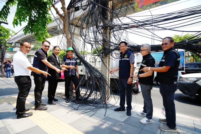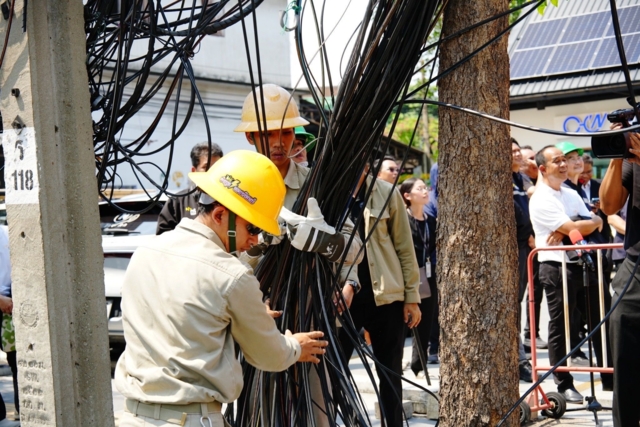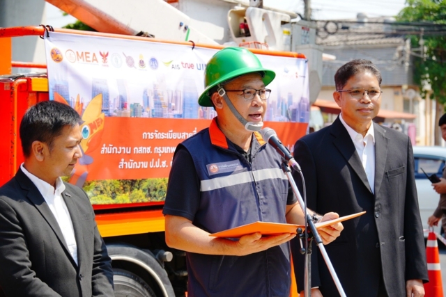 รองผู้ว่าการ MEA กล่าวว่า การจัดระเบียบสายสื่อสารมี 2 แบบ ได้แก่ การนำสายสื่อสารลงใต้ดิน และการจัดระเบียบสายสื่อสารบนเสาไฟฟ้า ซึ่งการไฟฟ้านครหลวงมีความมุ่งมั่นดำเนินการโครงการนำสายสื่อสารลงใต้ดิน ตามแผนของสำนักงาน กสทช. เพื่อให้เกิดความปลอดภัย โดยการนำสายสื่อสารลงใต้ดินจัดระเบียบสายสื่อสารในพื้นที่ถนนลาดพร้าวถือเป็นจุดยุทธศาสตร์สำคัญ เนื่องจากเป็นย่านธุรกิจ และที่พักอาศัยหนาแน่น โดยการดำเนินงานครั้งนี้เน้นการรื้อถอนสายสื่อสารที่ไม่ได้ใช้งานออกทั้งหมด หลังจากนั้นจะรื้อถอนเสาไฟฟ้าออกต่อไป และจัดระเบียบสายสื่อสารที่ยังใช้งานอยู่ให้เป็นระเบียบเรียบร้อยตามมาตรฐานความปลอดภัย รวมถึงการลดความเสี่ยงการเกิดอุบัติเหตุจากสายสื่อสาร และลดโอกาสเกิดเหตุอัคคีภัยจากการลัดวงจร ซึ่งจะส่งผลให้ระบบไฟฟ้ามีความมั่นคง และเสถียรภาพมากยิ่งขึ้น ทั้งนี้ MEA มีแผนดำเนินโครงการนำสายสื่อสารลงใต้ดินและโครงการจัดระเบียบสายสื่อสารอย่างต่อเนื่องตลอดปี 2569 โดยครอบคลุมพื้นที่เศรษฐกิจเพื่อยกระดับคุณภาพชีวิตของประชาชนและสร้างภาพลักษณ์ที่ดีให้แก่ประเทศไทย