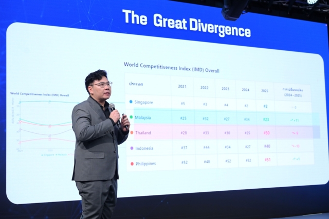 “ส่วนแพลตฟอร์มดิจิทัล มีหน้าที่เป็นโครงสร้างพื้นฐานของเศรษฐกิจยุคใหม่ เปิดเครื่องมือ ข้อมูล และระบบสนับสนุนให้แก่ผู้ประกอบการ โดยยึดหลักธรรมาภิบาลข้อมูลที่เหมาะสม เพื่อช่วยให้ผู้ประกอบการพัฒนาตนเอง ขยายศักยภาพ และเพิ่มประสิทธิภาพของตลาดโดยรวม หากทำได้ ประเทศไทยจะเปลี่ยนจาก ‘รัฐผู้อุดหนุน’ ไปสู่ ‘รัฐผู้สร้างสนามการเรียนรู้’ กล่าวคือ เราจะสามารถสร้างโครงสร้างพื้นฐานประเทศแห่งการเรียนรู้ได้อย่างแท้จริง การเปลี่ยนแปลงนี้ต้องอาศัยเวลาและความมุ่งมั่นจากทุกภาคส่วน เมื่อสำเร็จ อันดับความสามารถในการแข่งขันของไทยที่มีสัญญาณถดถอย จะพุ่งกลับขึ้นมาใกล้เบอร์ 1 ของอาเซียนอย่างสิงคโปร์ได้ในอนาคต” ดร.กิตติพงษ์กล่าวสรุป