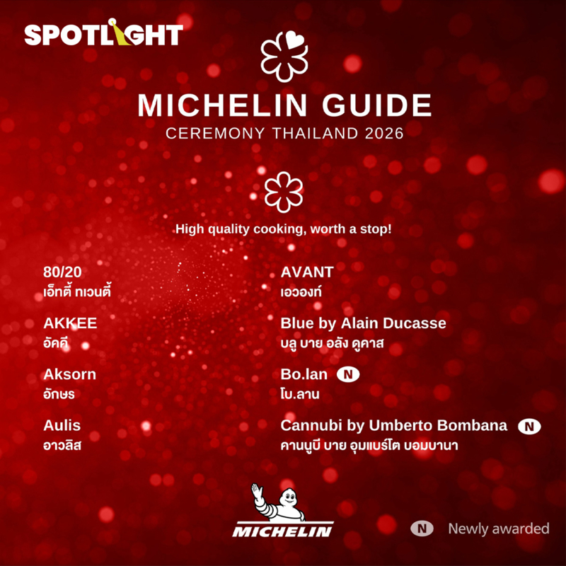 บทความนี้ SPOTLIGHT จะพาทุกคนไปเปิดลิสต์ ร้านอาหารในไทย ที่คว้าดาวมิชลิน ปี 2569 พร้อมเจาะแนวโน้มและทิศทางของวงการอาหารไทยในเวทีโลก