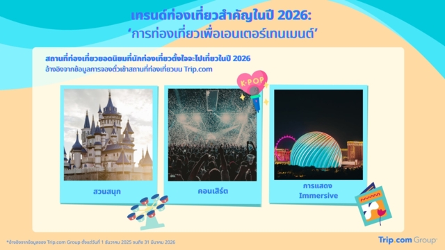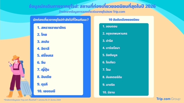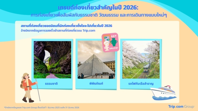 Trip.com Group เปิดเผยรายงานแนวโน้มการท่องเที่ยวที่น่าจับตามองในปี 2569 พบว่า ‘ประเทศไทย’ ยังคงเป็นจุดหมายปลายทางระดับโลกที่ได้รับความนิยมสูงสุดจากนักท่องเที่ยวทั่วโลก