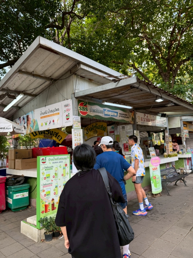 จริงอยู่ที่รอบการวิ่งในสวนลุมฯ จะมีร้านน้ำให้ซื้อดื่มระหว่างทาง แต่น้ำฝรั่ง ร้าน SBS ตั้งอยู่แค่จุดเดียวตรงประตู 3 จึงกลายเป็นเหมือนเป้าหมายของคนที่ไปวิ่งในสวนลุมฯ ที่จะตั้งเป้าให้ตัวเองวิ่งให้ครบรอบสวนลุมฯ แล้วจะได้กินน้ำฝรั่ง
