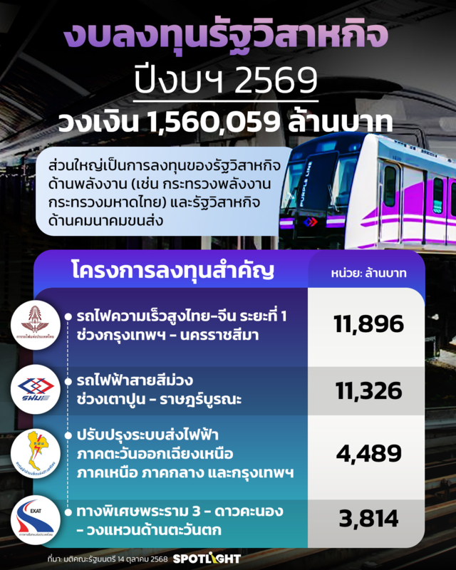 ในกรอบและงบลงทุนดังกล่าว จะมีการลงทุนอะไร วงเงินเท่าไหร่บ้าง SPOTLIGHT ชวนเปิดมติคณะรัฐมนตรีดูรายละเอียด