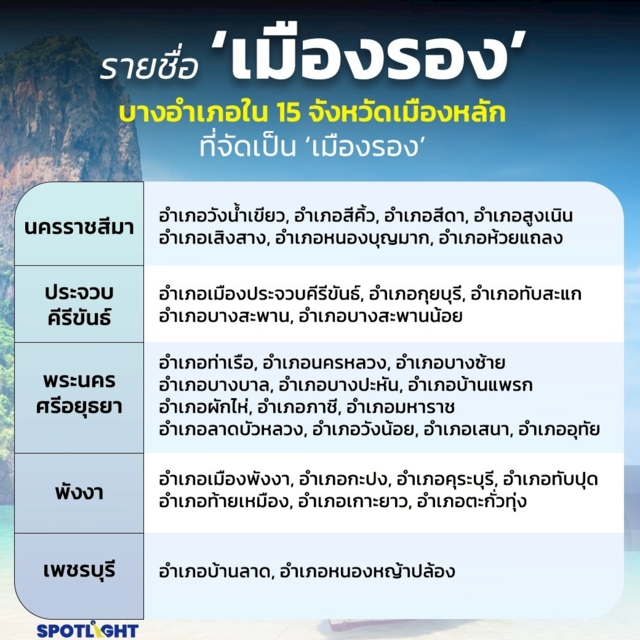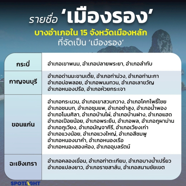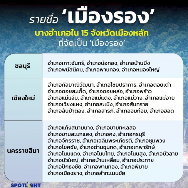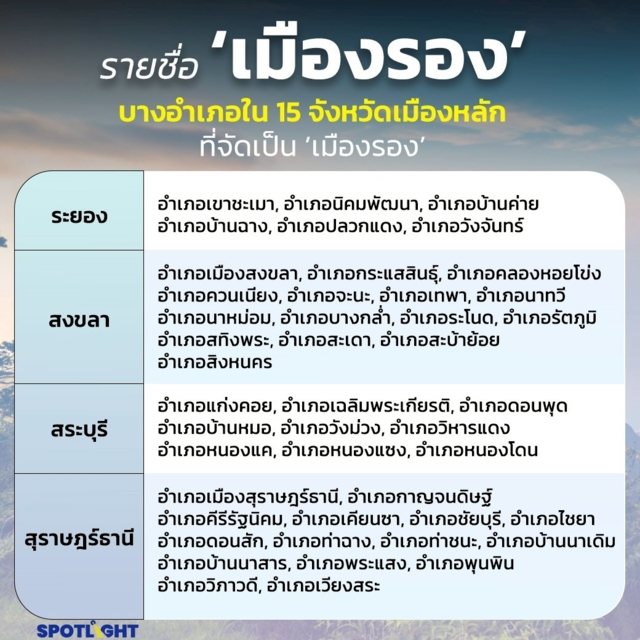 บางอำเภอใน 15 จังหวัดเมืองหลักที่จัดเป็น ‘เมืองรอง’