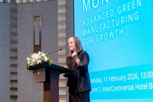 “เราทราบดีว่าประเทศไทยเป็นฐานการผลิตที่แข็งแกร่งมาอย่างยาวนาน แต่เราก็ทราบเช่นกันว่าผลิตภาพ (Productivity) บางส่วนเริ่มคงที่ และสัดส่วนภาคการผลิตต่อ GDP ลดลงจาก 31% ในปี 2553 เหลือเพียง 25% ในปัจจุบัน อย่างไรก็ตาม นี่คือโอกาสให้เกิดการยกระดับและการปรับปรุงฐานอุตสาหกรรมของไทยให้เป็นมิตรต่อสิ่งแวดล้อม เพื่อเพิ่มขีดความสามารถในการแข่งขัน” คุณเมลินดากล่าว