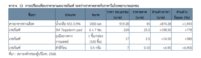 ปัญหาดังกล่าวมิได้เป็นเพียงกรณีเฉพาะราย หากแต่สะท้อนความแตกต่างเชิงโครงสร้างระหว่างระบบโรงพยาบาลของรัฐและเอกชน โดยกระทรวงสาธารณสุขมีอำนาจกำกับดูแลราคายาเฉพาะโรงพยาบาลของรัฐ ผ่านการกำหนดราคากลางของยาในบัญชียาหลักแห่งชาติ ขณะที่โรงพยาบาลเอกชนไม่อยู่ภายใต้กลไกควบคุมเดียวกัน การกำหนดราคายาและเวชภัณฑ์จึงขึ้นอยู่กับโครงสร้างต้นทุนและดุลยพินิจของผู้บริหารเป็นสำคัญ