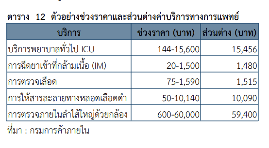 ความแตกต่างเชิงโครงสร้างดังกล่าวจึงทำให้ราคายาและเวชภัณฑ์ของโรงพยาบาลเอกชนสูงกว่าโรงพยาบาลรัฐอย่างหลีกเลี่ยงได้ยาก นอกจากนี้ การเข้าถึงข้อมูลราคายาและเวชภัณฑ์ของผู้ป่วยยังมีข้อจำกัด ทั้งจากความไม่คุ้นเคยกับชื่อยาทางการแพทย์ การขาดการรับรู้ถึงระบบข้อมูลราคาที่มีอยู่ และการที่ข้อมูลบางส่วนไม่เป็นปัจจุบัน ส่งผลให้ผู้ป่วยไม่สามารถนำข้อมูลดังกล่าวมาใช้ประกอบการตัดสินใจได้อย่างมีประสิทธิภาพ
