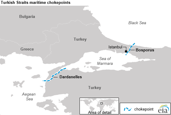 ด้านภูมิรัฐศาสตร์ ช่องแคบตุรกีอยู่ภายใต้อนุสัญญามงเทรอซ์ ซึ่งให้อำนาจตุรกีในการควบคุมการผ่านของเรือ โดยเฉพาะเรือรบ และนับตั้งแต่รัสเซียบุกยูเครนในปี 2565 ตุรกีได้ใช้กลไกดังกล่าวเพื่อจำกัดการเคลื่อนย้ายกำลังทางทะเลในภูมิภาค