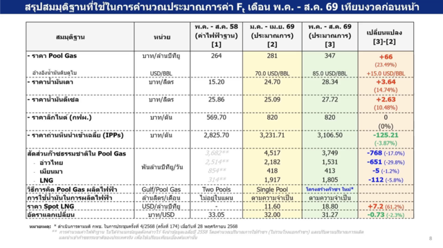 ตัวแปรสำคัญที่สุดในรอบนี้คือ “ราคาเชื้อเพลิง” โดยเฉพาะราคา Pool Gas ซึ่งเป็นราคาที่มีความผันผวนสูง โดยจากประมาณการเดิมในช่วงเดือนมกราคม-เมษายน อยู่ที่ประมาณ 281 บาทต่อล้านบีทียู แต่ภายหลังสถานการณ์ความขัดแย้งในตะวันออกกลาง ราคาปรับขึ้นอย่างรวดเร็วไปอยู่ที่ 347 บาทต่อล้านบีทียู