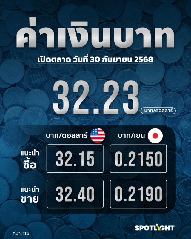 ฝ่ายธุรกิจตลาดเงินและธุรกรรมระหว่างประเทศ ทีเอ็มบีธนชาต (ttb) เปิดเผยว่า ค่าเงินบาทเช้านี้เปิดตลาด 32.23 บาท/ดอลลาร์ ใกล้เคียงกับราคาปิดตลาดเมื่อวานที่ระดับ 32.26 บาท/ดอลลาร์