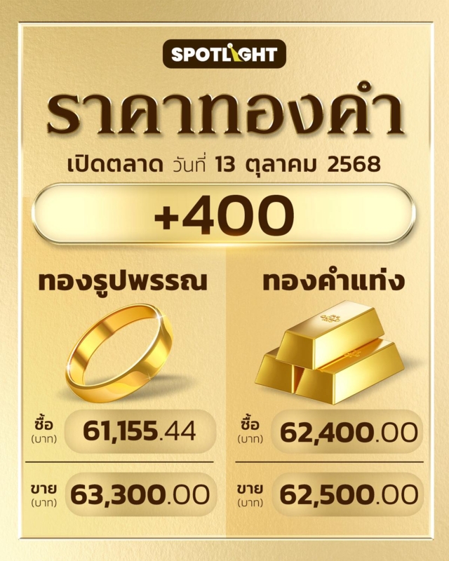 ทองโลกได้มีการปรับตัวขึ้น จากการที่ภาวะชัตดาวน์สหรัฐฯ ยังไม่มีสัญญาณบ่งชี้ว่าพรรคเดโมแครต –รีพับลิกันจะสามารถตกลงกันได้เกี่ยวกับการผ่านร่างงบประมาณชั่วคราว ในขณะที่นาย Michael Hartnett นักยุทธศาสตร์ของ Bank of America (BoFA) คาดการณ์ว่า ราคาทองคำจะแตะ 6,000 ดอลลาร์ ในปีหน้า เนื่องจากสัดส่วนการลงทุนในทองคำที่นักลงทุนหรือสถาบันต่าง ๆ ถือครองอยู่มีน้อยเกินไป เมื่อเทียบกับสินทรัพย์ประเภทอื่น ๆ ในพอร์ตโฟลิโอ และประธานเฟดคนใหม่ที่เอื้อนโยบายการเงินผ่อนคลายที่อาจก่อให้เกิดฟองสบู่ อย่างไรก็ตาม ดัชนีเงินดอลลาร์ (DXY) ได้ปรับตัวขึ้นอีกครั้ง สู่ระดับ 99.24 หน่วย จาก 98.94 หน่วย สืบเนื่องมาจากเงินเยนและยูโรอ่อนค่า และนายสก็อตต์ เบสเซนต์ รมว.คลังสหรัฐฯ เปิดเผยว่า มาตรการภาษี 100% ที่ปธน.ทรัมป์ประกาศจะเรียกเก็บจากจีนในวันจันทร์นั้น อาจไม่จำเป็นต้องเกิดขึ้น และเจ้าหน้าที่จีน-สหรัฐฯ จะมีการหารือกันที่กรุงวอชิงตันในสัปดาห์นี้ รวมถึงยังคงมีกำหนดการพบกับปธน.สี จิ้นผิง – ปธน.ทรัมป์ ที่ APEC ณ เกาหลีใต้ในวันที่ 31 ต.ค. -1 พ.ย. ทางด้านกองทุน SPDR ซื้อทองคำ 1.72 ตัน รวมสุทธิ 1,018.88 ตัน