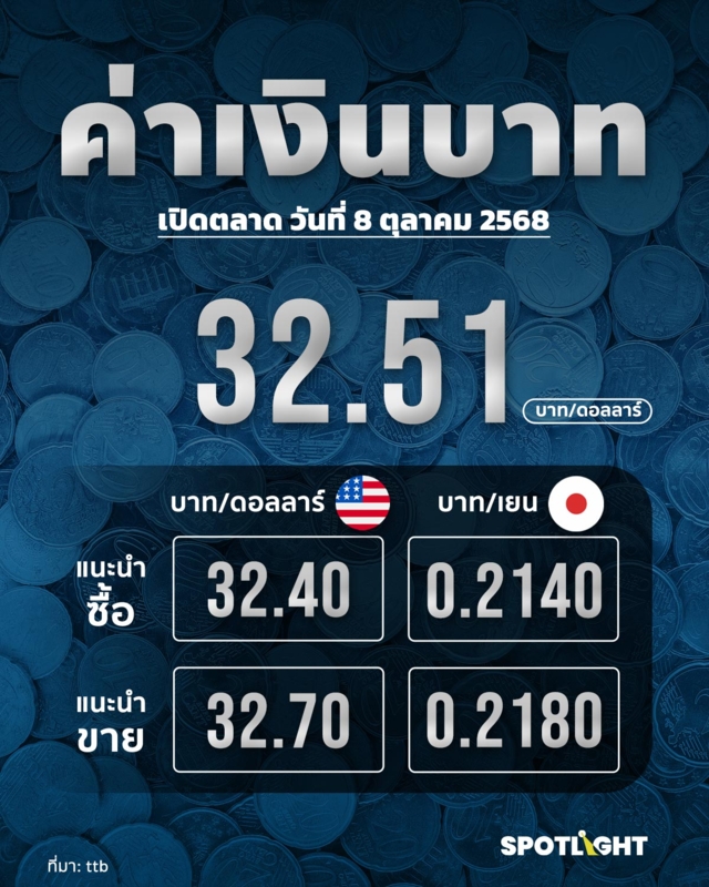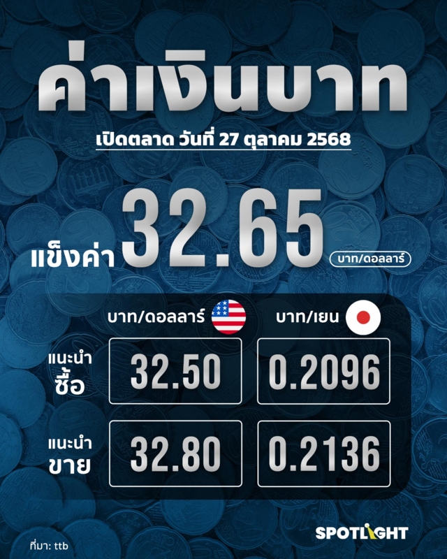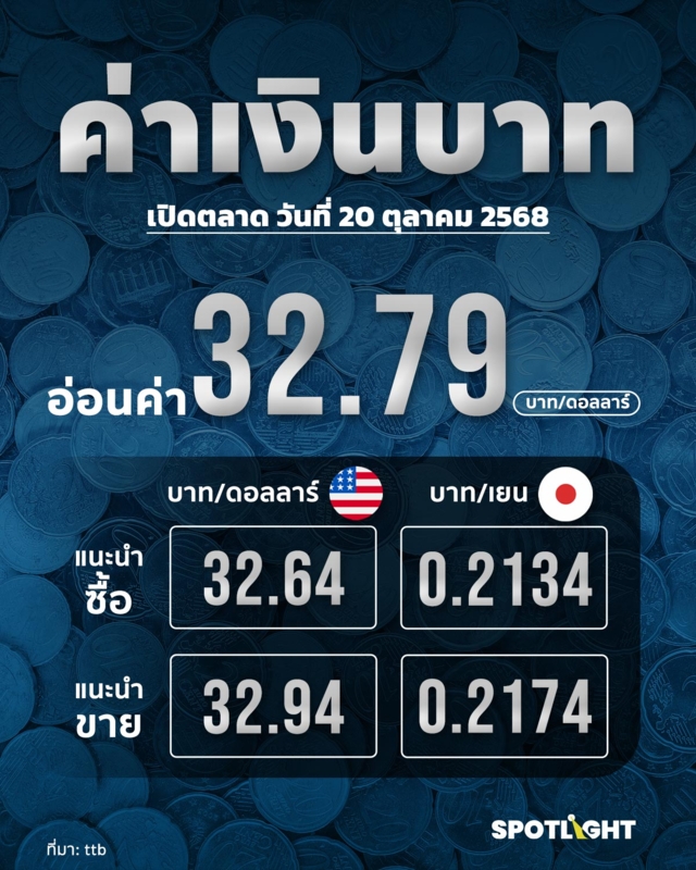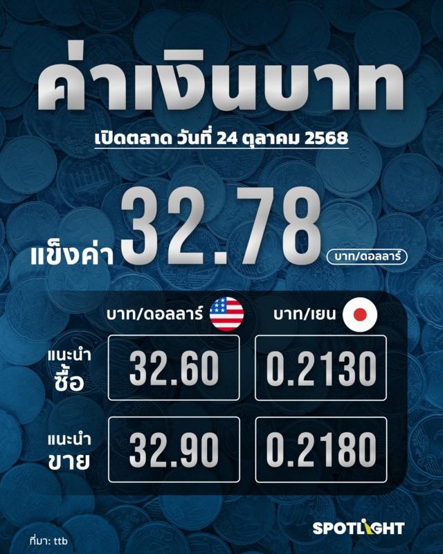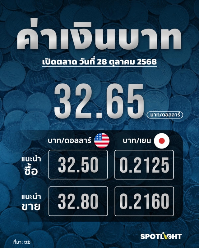 ฝ่ายธุรกิจตลาดเงินและธุรกรรมระหว่างประเทศ ทีเอ็มบีธนชาต (ttb) เปิดเผยว่า *ค่าเงินบาทเช้านี้เปิดตลาด 32.85 บาท/ดอลลาร์ อ่อนค่าลงเมื่อเทียบกับราคาปิดตลาด เมื่อวานที่ระดับ 32.78 บาท/ดอลลาร์ ดอลลาร์สหรัฐแข็งค่าขึ้นเมื่อเทียบกับสกุลเงินหลัก ทั้งนี้นักลงทุนชะลอการซื้อขาย เพื่อรอติดตามการเจรจาการค้าระหว่างระหว่างจีนและสหรัฐฯ อย่างใกล้ชิด หลังมีสัญญาณบ่งชี้ว่าการเจรจาอาจมีความคืบหน้า โดยประธานาธิบดีโดนัลด์ ทรัมป์กล่าวว่า ภาษีศุลกากรในอัตราสูงถึง 100% ที่เขาขู่ว่าจะเรียกเก็บจากจีนเพิ่มเติมนั้น จะไม่มีความยั่งยืน ขณะเดียวกันทรัมป์ได้แสดงความหวังว่าจะสามารถบรรลุข้อตกลงการค้าอย่างเป็นธรรมกับประธานาธิบดีสี จิ้นผิง ผู้นำจีน ในระหว่างการประชุมร่วมกันที่เกาหลีใต้ในช่วงปลายเดือนนี้