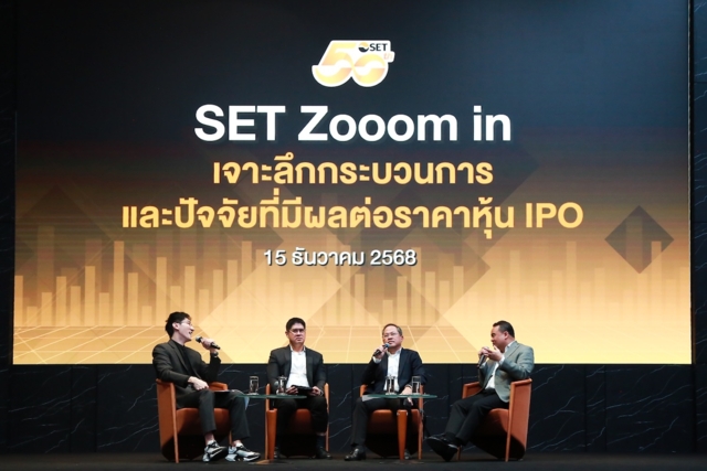 จากคำถามที่ได้ยินบ่อยในระยะหลัง ตลาดหลักทรัพย์แห่งประเทศไทย (ตลท.) จึงจัดงาน “SET Zooom in : เจาะลึกกระบวนการ และปัจจัยที่มีผลต่อราคาหุ้น IPO” ในวันที่ 15 ธันวาคม 2568 โดยมี สรวิศ ไกรฤกษ์ รองผู้จัดการ สายงานผู้ออกหลักทรัพย์และสายงานการตลาดตลาดหลักทรัพย์แห่งประเทศไทย และฝั่งที่ปรึกษาทางการเงิน (FA) สมศักดิ์ ศิริชัยนฤมิตร ประธานเจ้าหน้าที่บริหาร บริษัท แอสเซท โปร แมเนจเม้นท์ จำกัด และทินพันธุ์ หวั่งหลี รองกรรมการผู้จัดการ บริษัทหลักทรัพย์ กสิกรไทย จำกัด (มหาชน) ร่วมให้ข้อมูล