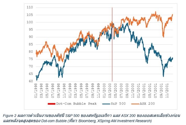 ตัวเลขคาดการณ์การเติบโตของกำไรสำหรับดัชนี S&P 500 โดย Bloomberg ในปีหน้า (2026) อยู่ที่ 310.30 และปี 2027 ที่ 352.47 จุด เท่ากับคิดเป็นการเติบโตที่ 13.67% และ 13.59% ตามลำดับ ซึ่งการเติบโตส่วนใหญ่ยังคงผลักดันมาจากกลุ่มเทคโนโลยี ทำให้เรายังคงมองบวกกับตลาดสหรัฐฯ อยู่เช่นเดิม อย่างไรก็ตาม จากความผันผวนในช่วงปลายปี ที่ทำให้ดัชนีมีจังหวะลงในช่วงปลายปี ทำให้เรามองว่ายังมีความผันผวนระหว่างทางที่อาจไม่ได้ไปอย่างราบรื่น คำแนะนำของเราจึงมองว่า ควรตอบรับความผันผวนลักษณะนี้ด้วยการลงทุนในตลาดที่มีคุณสมบัติป้องกันความเสี่ยงและความผันผวนได้ดี (Defensive) เป็นการป้องกันความเสี่ยงลักษณะนี้ ตัวอย่างเช่น ลงทุนในภูมิภาคออสเตรเลียที่มีประวัติทนทานกับความผันผวน โดยเฉพาะอย่างยิ่งในช่วงวิกฤติ Dot-com ในปี 2000