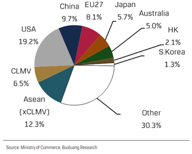 รูปสัดส่วนการส่งออกของไทย แยกตามตลาดหลัก (เดือนมกราคม 2026)