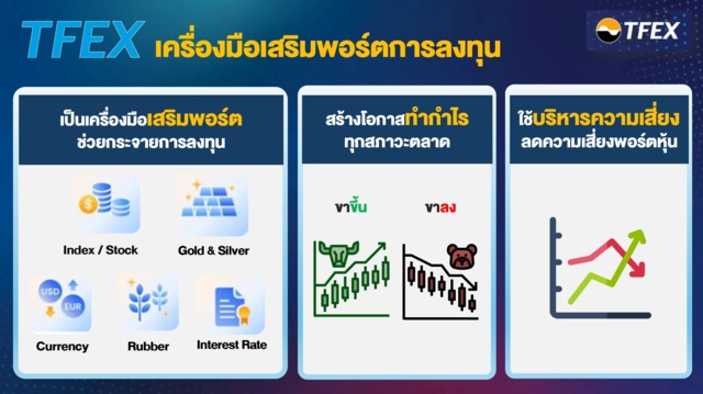 กล่าวโดยรวม TFEX ทำให้การกระจายความเสี่ยงไม่ได้หมายถึงการแบ่งเงินไปหลายสินทรัพย์เท่านั้น แต่หมายถึงการมีเครื่องมือที่ช่วยควบคุมความผันผวนของพอร์ต ลดโอกาสขาดทุนรุนแรงในช่วงตลาดไม่เอื้ออำนวย และบริหารความเสี่ยงได้อย่างยืดหยุ่นมากขึ้นในสภาวะเศรษฐกิจที่เปลี่ยนแปลงตลอดเวลา