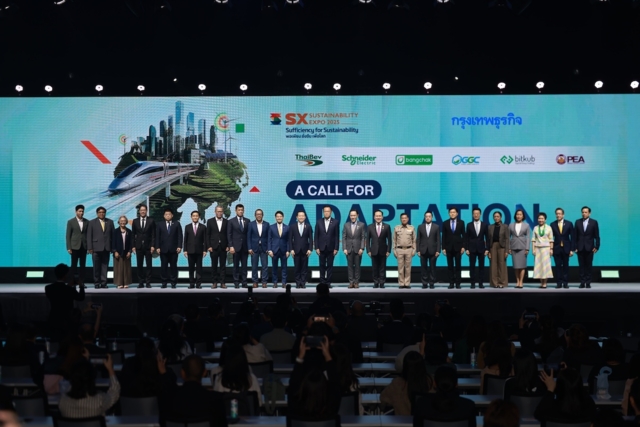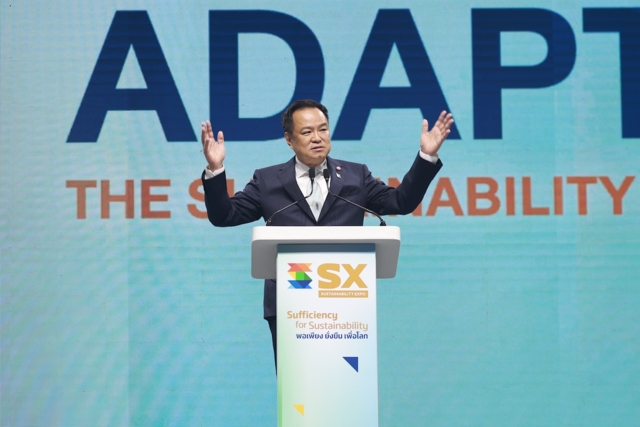 งานสัมมนา “A Call for Adaptation The Sustainability in Trade & Industry” เป็นส่วนหนึ่งในงาน Sustainability Expo 2025 (SX2025) จัดโดย ‘กรุงเทพธุรกิจ’ และ ‘Sustainability Expo’ ในวันศุกร์ที่ 3 ตุลาคม 2568 ณ เพลนารีฮอลล์ ชั้น 1 ศูนย์การประชุมแห่งชาติสิริกิติ์ ได้รับเกียรติจากนายกรัฐมนตรีและรัฐมนตรีว่าการกระทรวงมหาดไทยกล่าวปาฐกถาเปิดงาน โดยมี ฐาปน สิริวัฒนภักดี ประธานอำนวยการจัดงาน Sustainability Expo และประธานเจ้าหน้าที่บริหาร บริษัท ไทยเบฟเวอเรจ จำกัด (มหาชน) และ ปณต สิริวัฒนภักดี ประธานเจ้าหน้าที่บริหาร กลุ่ม บริษัท เฟรเซอร์ส พร็อพเพอร์ตี้ ลิมิเต็ด และฉาย บุนนาค ประธานกรรมการบริหารและประธานเจ้าหน้าที่บริหาร เนชั่น กรุ๊ป ให้การต้อนรับให้การต้อนรับ