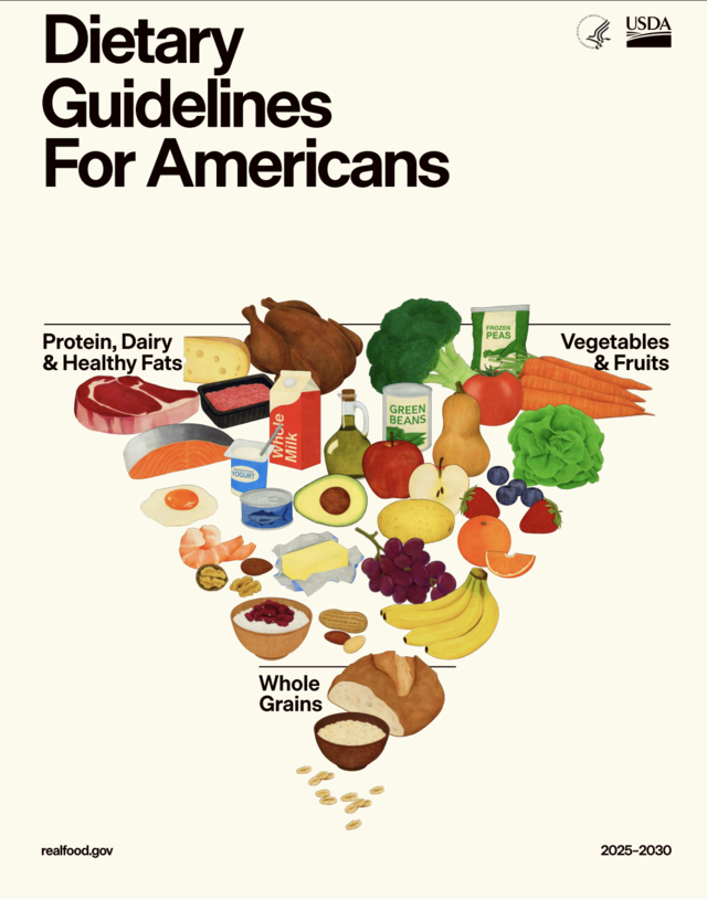 แนวทางโภชนาการสำหรับชาวอเมริกัน หรือ DGA ตัวใหม่ ซึ่งเผยแพร่ในลักษณะของพิระมิดอาหาร กำลังกลายเป็นที่ถกเถียง โดยการเผยแพร่ครั้งนี้เกิดขึ้นภายใต้การนำกระทรวงสาธารณสุขของโรเบิร์ต เอฟ เคนเนดี