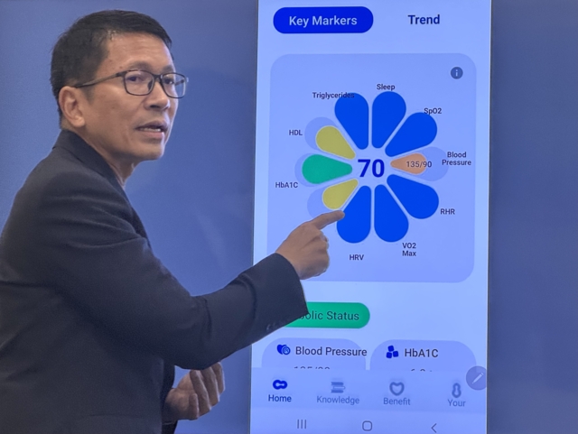 “ถ้าไม่มี AI มันทำไม่ได้นะ” พงศ์พรหมยกตัวอย่างว่าถ้าผู้ใช้คนหนึ่งชอบวิ่งออกกำลังกายทุกวัน แต่เป็นวันที่ฝุ่นในอากาศสูงมาก หรืออากาศร้อนจนมีความเสี่ยงเป็น heat stroke ระบบสามารถเตือนผู้ใช้เป็นรายบุคคลได้ หรือข้อมูลพฤติกรรมต่าง ๆ ที่เกี่ยวข้อง สูบบุหรี่ ดื่มแอลกอฮอล์ หรือเลิกมาแล้วกี่ปี ปกติออกกำลังมากน้อยแค่ไหน โดยที่ระบบสามารถเชื่อมต่อกับ wearable ของนักงานได้ เพื่อผลที่แม่นยำขึ้น ได้เป็นตัวเลขคะแนน พร้อมผลประเมินความเสี่ยงทางสุขภาพ อย่างโรคเรื้อรังต่าง ๆ ใน 1 ปีข้างหน้า หรือ 3 ปี หรือแม้แต่ 10 ปี