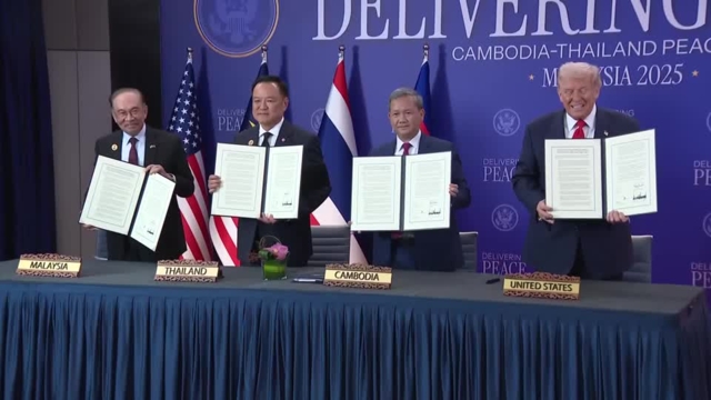 ที่มาเลเซีย ทรัมป์สามารถเจรจาเข้าถึงทรัพยากรแร่หายากที่สำคัญกับทั้งไทยและมาเลเซีย และยังได้ลงนามในสนธิสัญญา เพื่อลดความตึงเครียดบริเวณชายแดนระหว่างไทยและกัมพูชา ซึ่งเป็นลักษณะของข้อตกลงสันติภาพแบบที่ทรัมป์นำเสนอว่าเป็นผลงานของเขาเอง