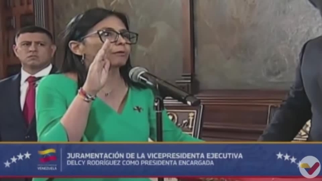 เดลซี โรดริเกซ อดีตรองประธานาธิบดีของเวเนซุเอลา ได้สาบานตนเข้ารับตำแหน่งผู้นำประเทศเวเนซุเอลา ในการกล่าวสุนทรพจน์ต่อหน้าสภานิติบัญญัติ ซึ่งส่วนใหญ่ประกอบด้วยผู้ภักดีต่อรัฐบาล โรดริเกซได้ยืนยันอีกครั้งถึงการต่อต้านการโจมตีทางทหารที่นำไปสู่การจับกุมและขับไล่มาดูโรและภรรยาของเขา ซิเลีย ฟลอเรส ออกจากตำแหน่ง