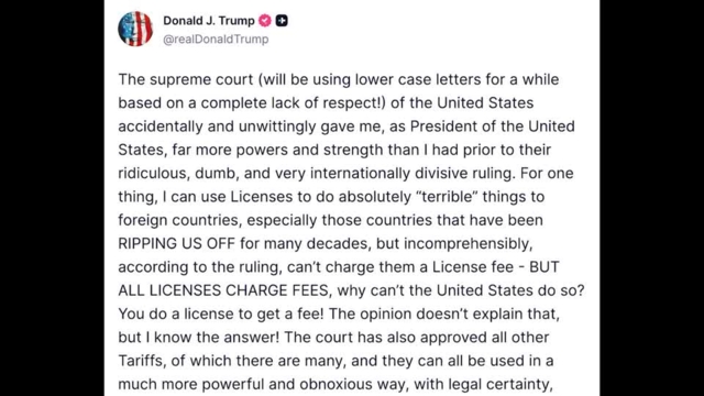 การตัดสินของศาลฎีกาสหรัฐฯ ที่ให้ยกเลิกมาตรการภาษี "วันประกาศอิสรภาพ" (Liberation Day) ของประธานาธิบดีโดนัลด์ ทรัมป์ กับทุกประเทศทั่วโลกที่ค้าขายกับทรัมป์ ไม่เว้นแม้แต่พันธมิตรอันเหนียวแน่นของสหรัฐฯ ถือเป็นความพ่ายแพ้ทางกฎหมายที่ทำให้ผู้นำสายสุดโต่งของสหรัฐฯ ฉุนจัด แต่นักวิเคราะห์เตือนว่า สิ่งนี้แทบไม่ได้ช่วยลดทอนความผันผวนทางเศรษฐกิจโลกเลย