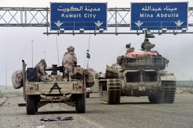 คู่ขัดแย้งในสงครามอ่าวครั้งนั้นคืออิรักและคูเวต ก่อนจะลุกลามไปเป็นความตึงเครียดระดับภูมิภาค ครั้งนั้น สหรัฐฯ นำกองกำลังพันธมิตรเปิดปฏิบัติการในคูเวตเพื่อขับไล่อิรักออกไป ก่อนจะประกาศปลดปล่อยคูเวตเป็นอิสระ