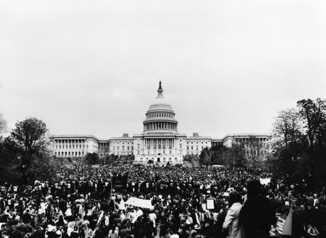 และการประท้วงครั้งใหญ่เกิดขึ้นเมื่อวันที่ 15 พฤศจิกายน 2512 โดยมีประชาชนราว 500,000 คนรวมตัวในกรุงวอชิงตัน ดี.ซี. เพื่อเรียกร้องให้ประธานาธิบดีริชาร์ด นิกสัน ผู้นำในสมัยนั้นยุติสงครามเวียดนาม