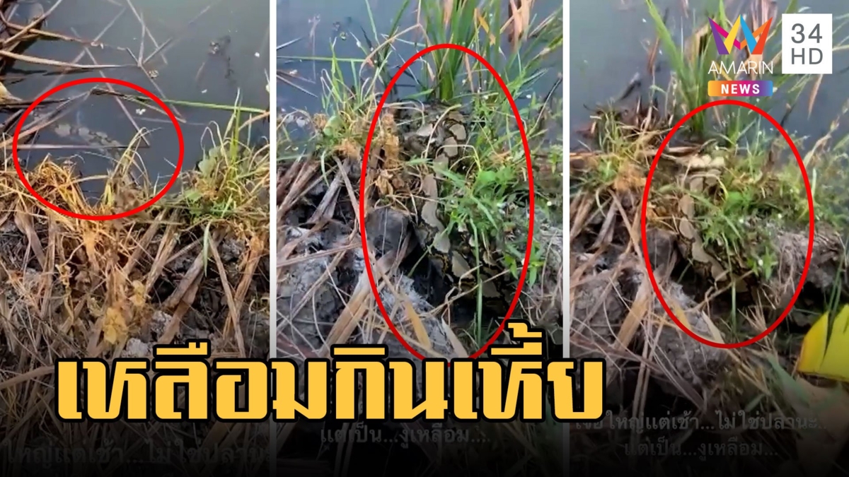 หนุ่มตกปลาเจองูเหลือม แต่ในปากงูเหลือมเจอตัวเหี้ยอีก